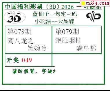 > 2026079期蓝仙子一句定三码