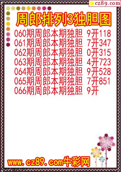 > 26年066期周郎排列3独胆图