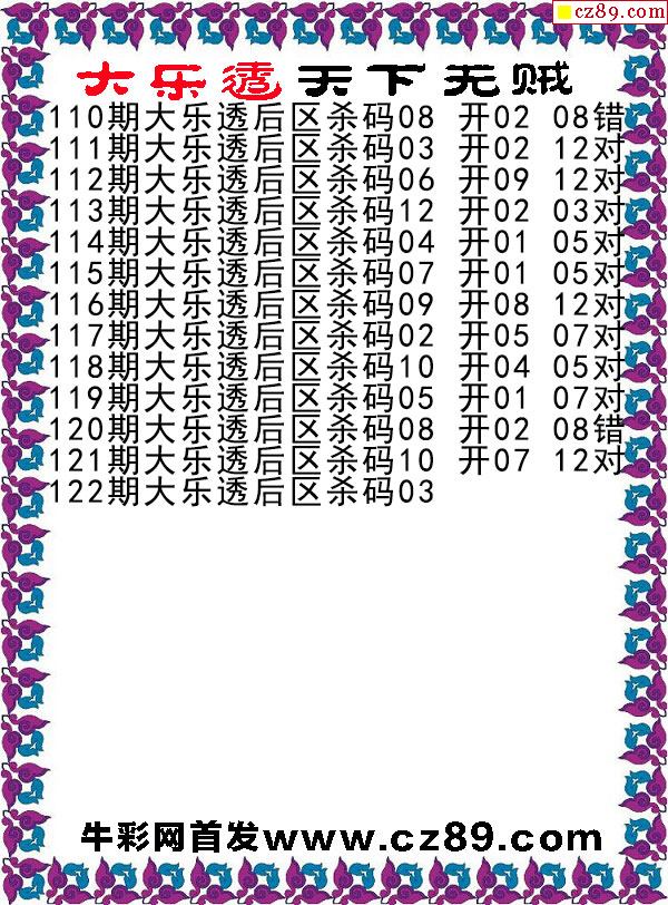 大乐透122期牛彩特邀专家前区后区杀号定胆图表