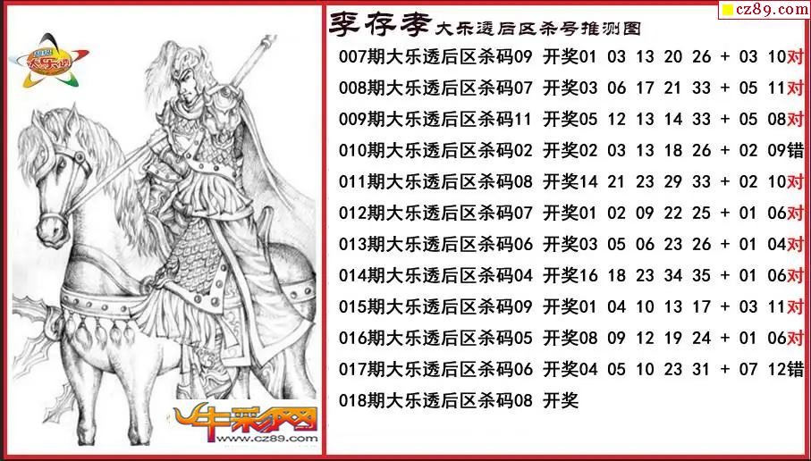 大乐透018期李存孝后区杀号推测图